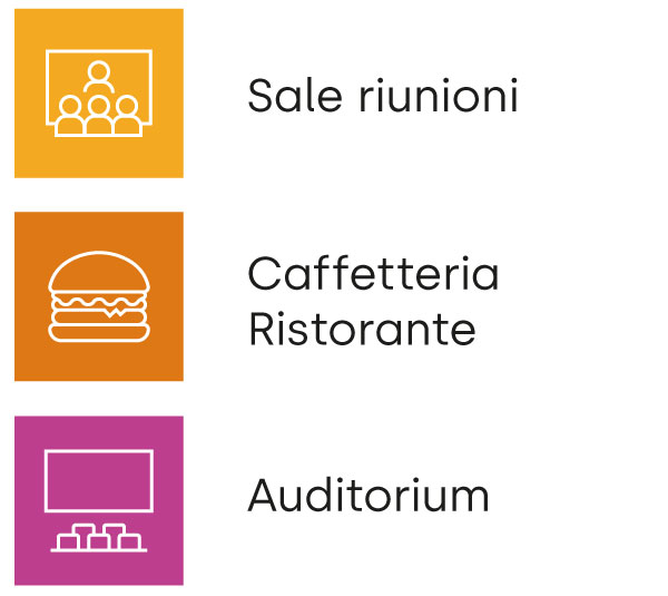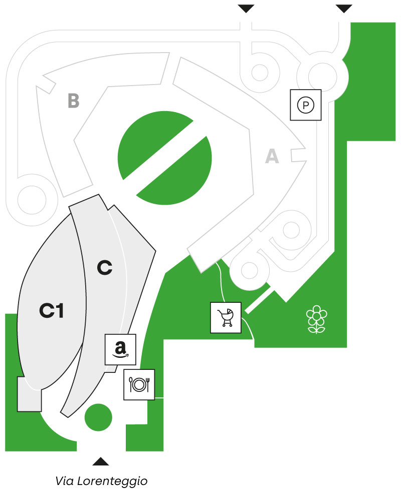 La Palazzina Servizi C1 completa il campus con spazi dedicati alla condivisione e alla rappresentanza: sale riunioni condivise, un ampio auditorium per eventi e presentazioni, oltre a una caffetteria e ristorante aziendale pensati per favorire momenti di incontro e networking. Un hub funzionale che arricchisce l’esperienza lavorativa.