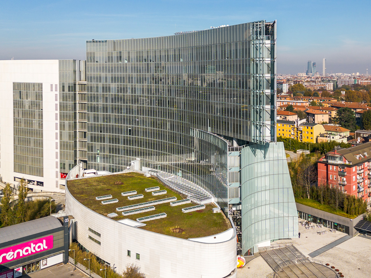 La Palazzina C si sviluppa su 15 piani fuori terra e accoglie una rappresentativa welcome area al piano terra, pensata come spazio di ingresso e relazione. Gli uffici, flessibili e luminosi, si estendono per una superficie complessiva di quasi 28.000 mq, offrendo soluzioni adatte a headquarter e grandi utilizzatori alla ricerca di efficienza, visibilità e qualità architettonica.