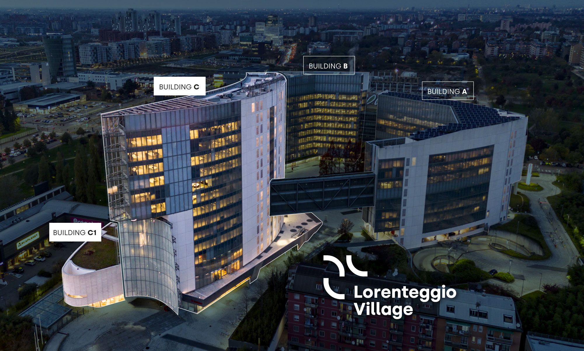 Lorenteggio Village è un campus integrato composto da tre edifici direzionali e un edificio dedicato ai servizi comuni, progettati per favorire interazione e condivisione.